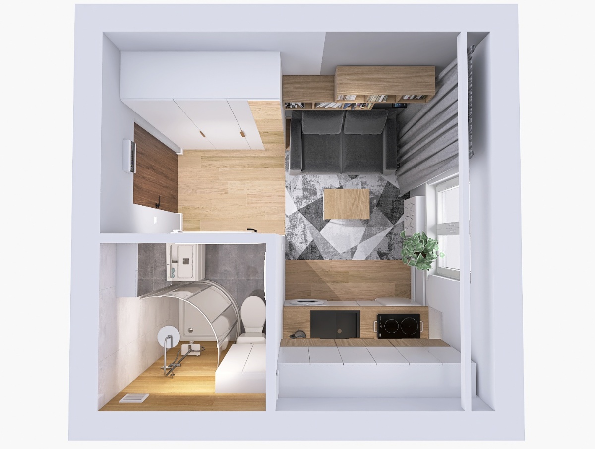 – pokoju z aneksem kuchennym,