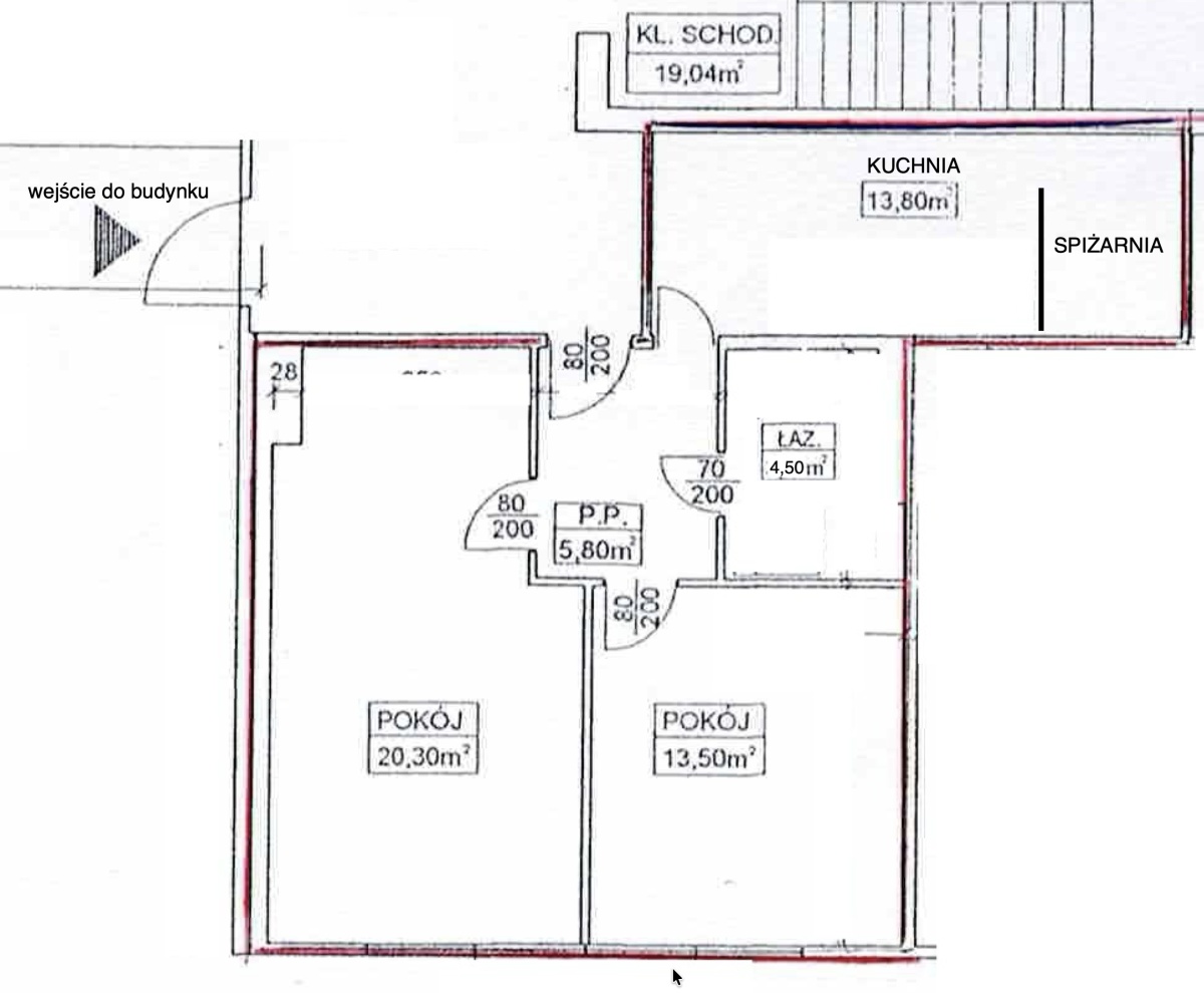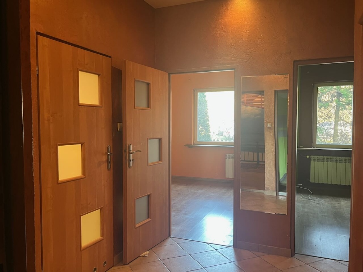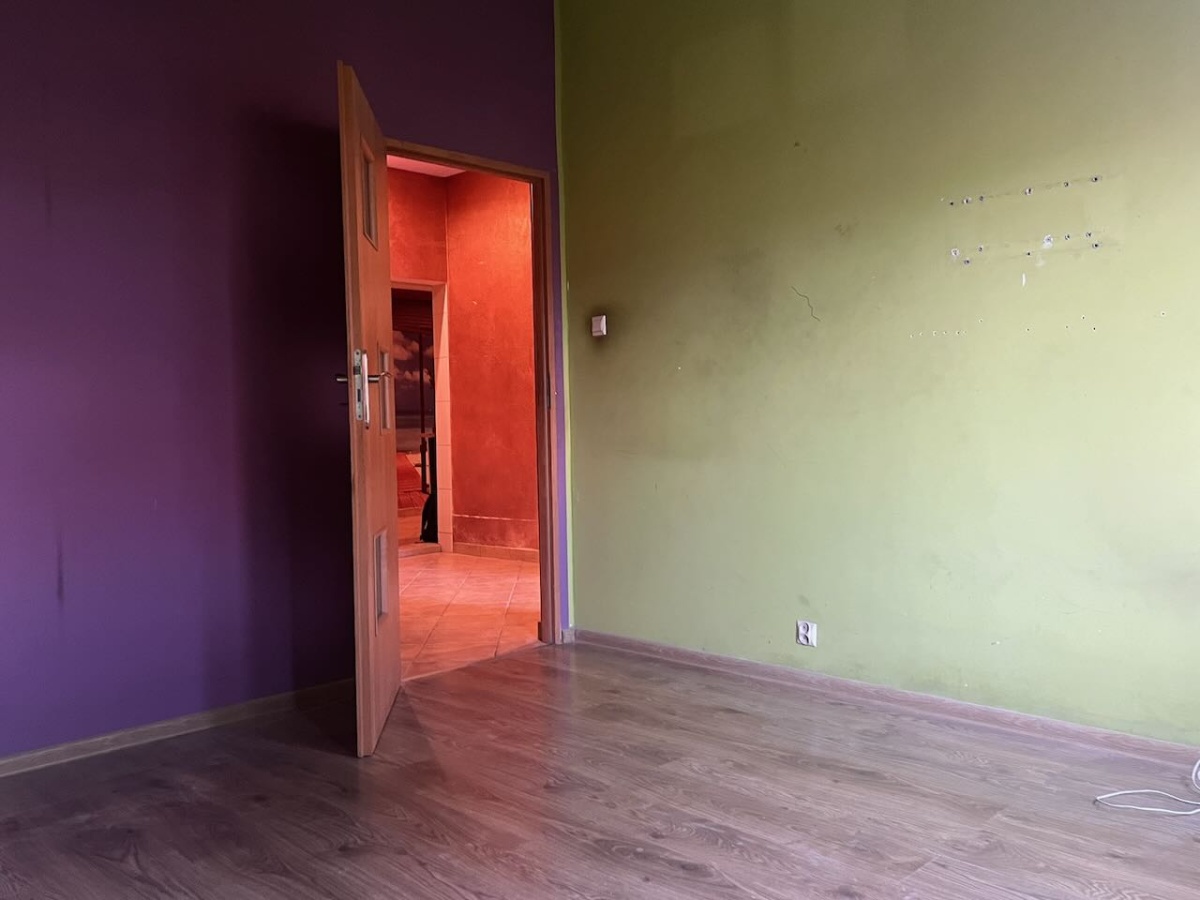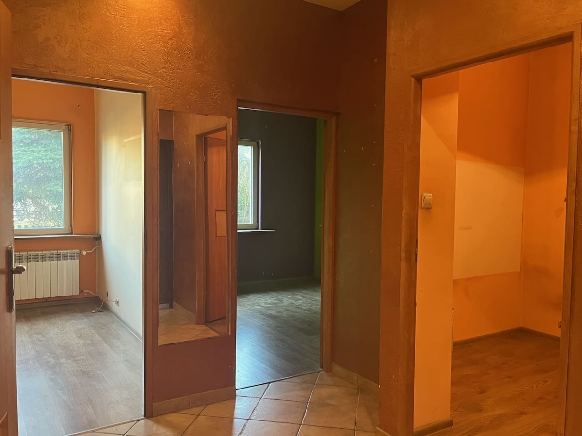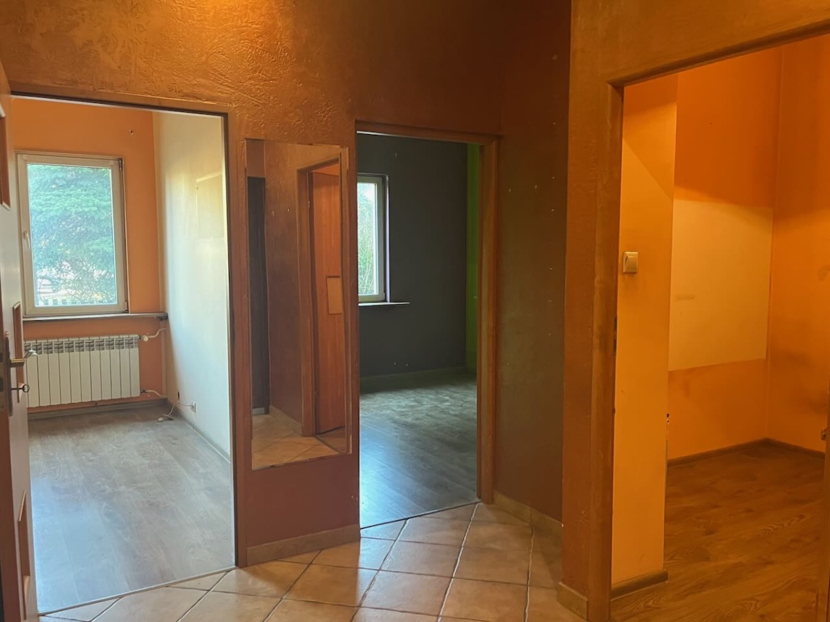 Mieszkanie do remontu na parterze budynku z bardzo łatwym dostępem dla osób niepełnosprawnych. Powierzchnia mieszkalna to 60m2, na które składają się kuchnia ze spiżarnią, przedpokój, łazienka i obecnie trzy pokoje. Pierwotnie mieszkanie było dwupokojowe lecz jeden z pokoi został podzielony na dwa (jeden bez okna służył jako duża garderoba). Ściankę działową można w łatwy sposób usunąć. Oglądanie możliwe każdego dnia.