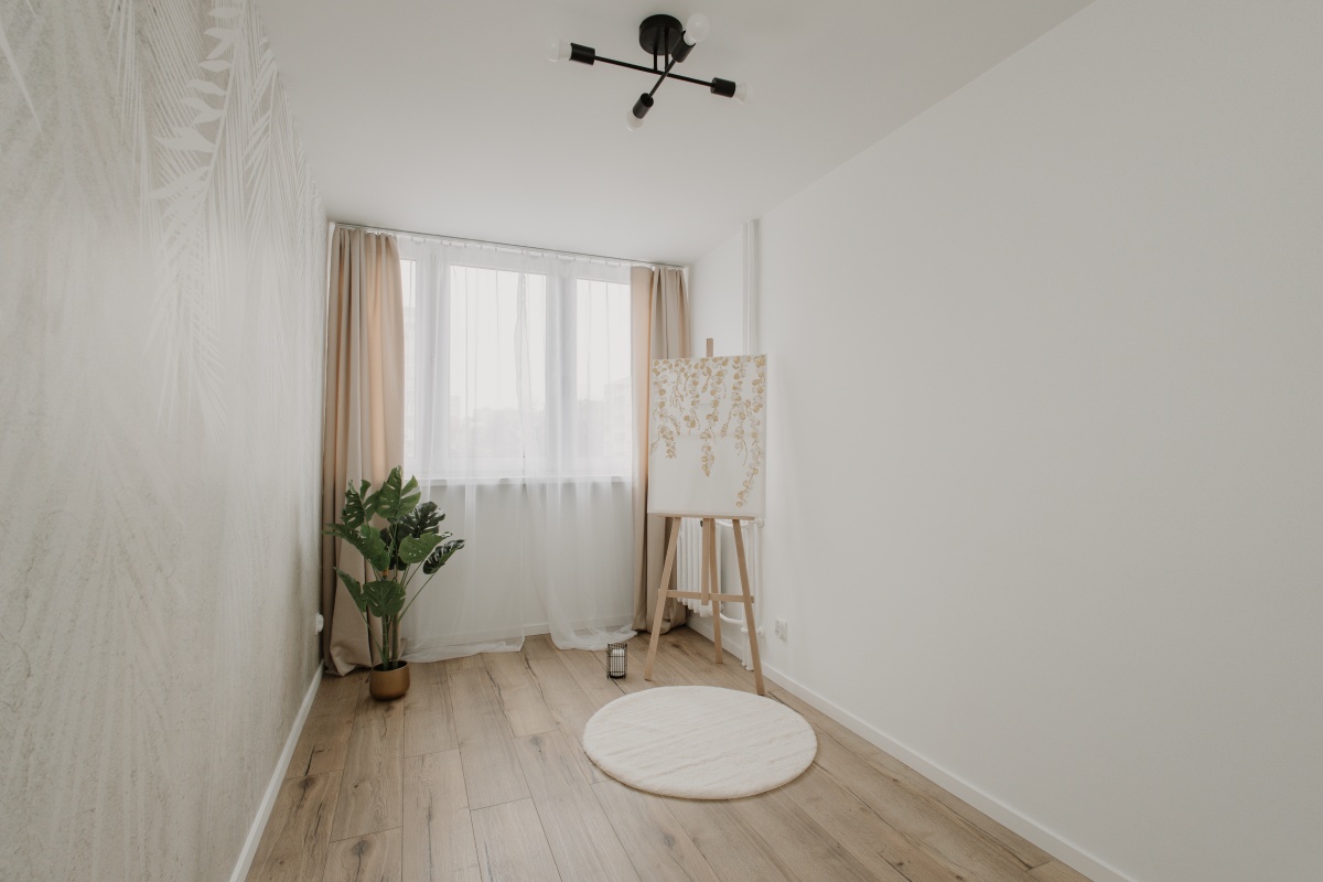 Mieszkanie przeszło generalny remont, który obejmował: wymianę instalacji elektrycznych i wod.-kan., gładzie gipsowe i nowe panele, wymianę stolarki drzwiowej wewnętrznej, nowoczesną łazienkę z pełnym wyposażeniem. Lokal gotowy do zamieszkania wraz z zabudową kuchenną i sprzętem AGD (płyta grzewcza, piekarnik, okap). Wszystkie materiały wykorzystane w trakcie remontu są wysokiej jakości, a aranżacja została wykonana z dbałością o detale.
