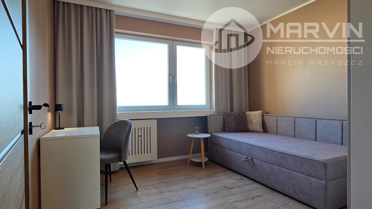 Pokój 2 (13m2) – rozkładana kanapa, pojemna szafa, biurko z krzesłem