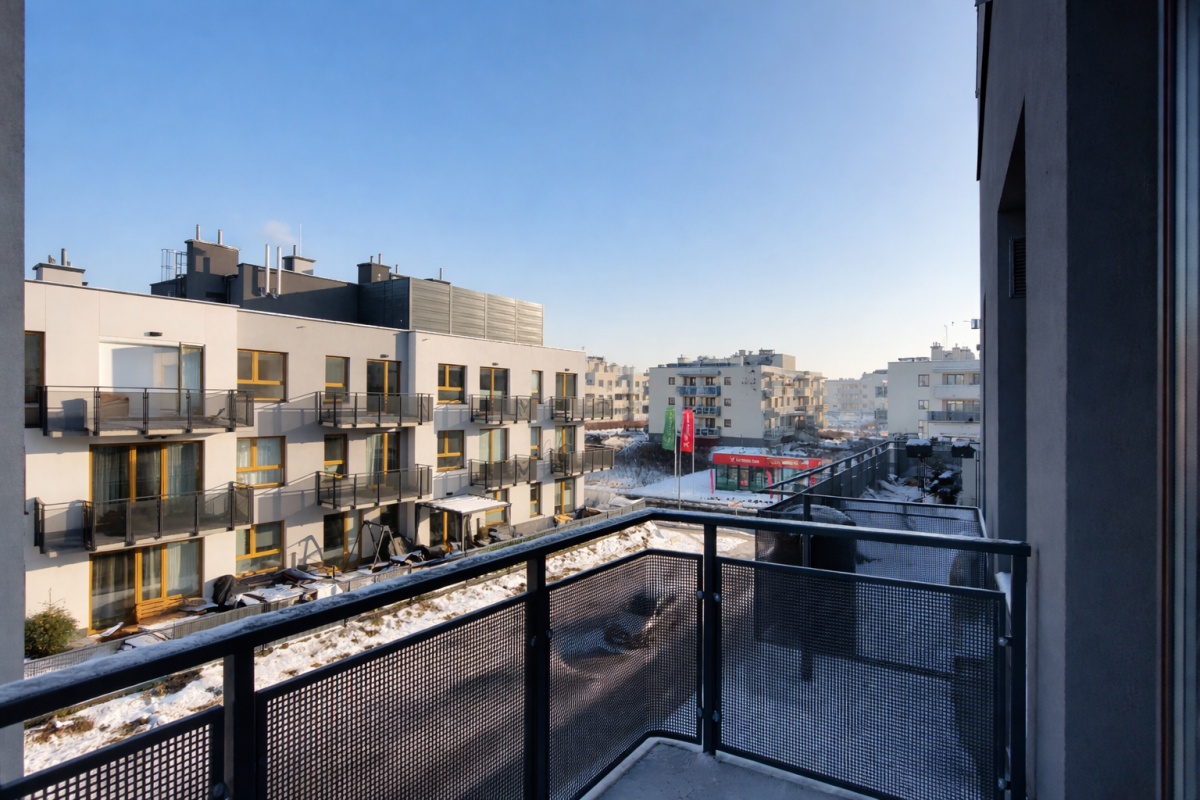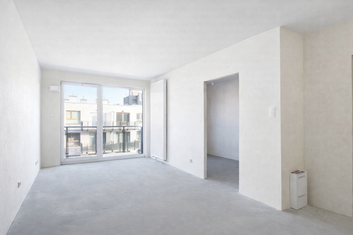 Mieszkanie posiada bardzo praktyczny rozkład – w salonie okno na całą ścianę idealnie doświetla i optycznie powiększa pomieszczenie. W sypialni zmieścimy duże, podwójne łóżko oraz szafę na całą szerokość pokoju. Aneks kuchenny w kształcie litery L zapewni wystarczający blat roboczy i sporo miejsca do przechowywania. Całość pozwoli na komfortowe użytkowanie zarówno przez singla, parę, jak i jako inwestycja pod wynajem.