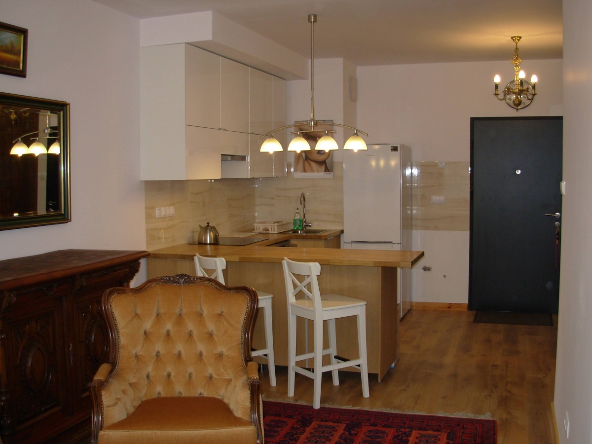 Mieszkanie jest doskonale zaprojektowane, przytulne i w pełni wyposażone: kuchnia – duża lodówka, zmywarka, piekarnik, płyta, okap. Pomimo lokalizacji w Centrum, mieszkanie jest bardzo ciche.