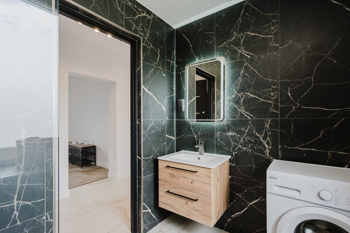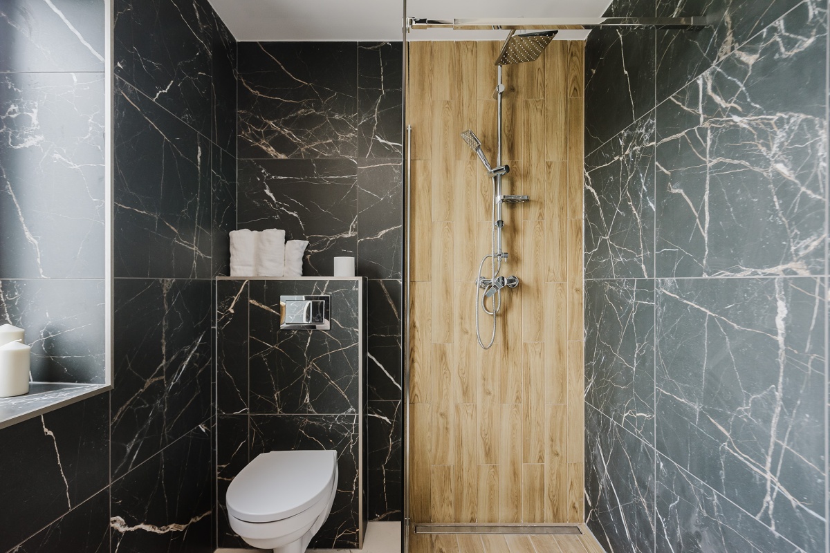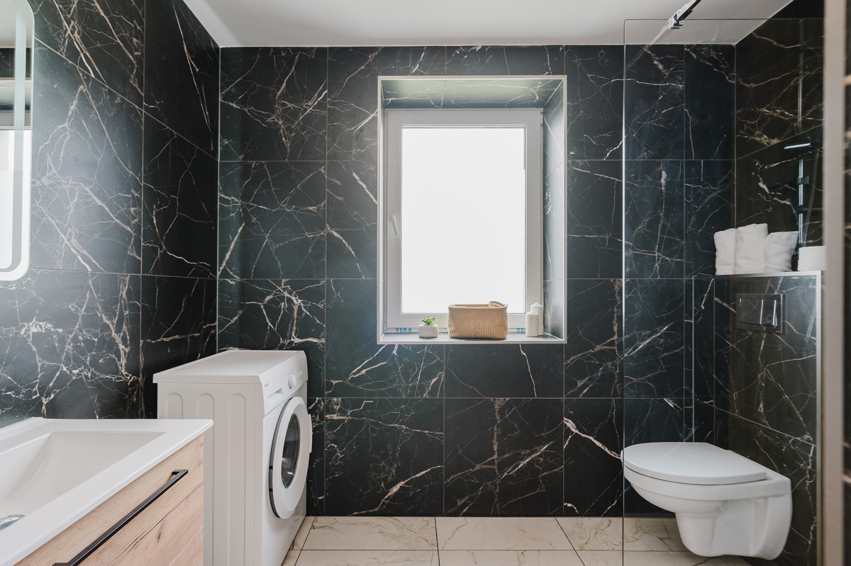 -łazienka i toaleta kafelki, kabina , zlew, geberit