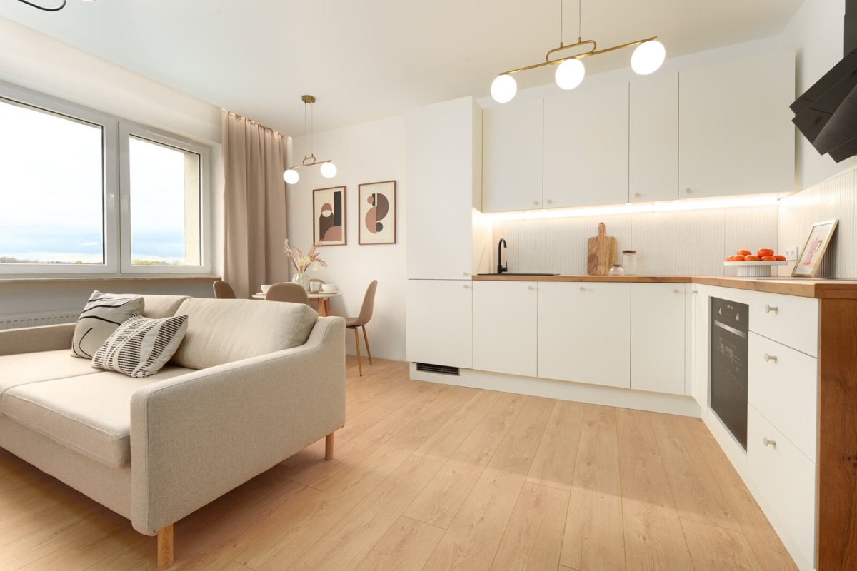 Bardzo funkcjonalny układ – idealny dla pary, rodziny lub pod wynajem.