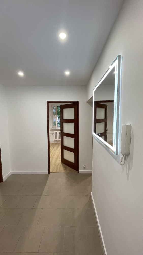 W 2014 roku mieszkanie przeszło generalny remont (panele, płytki, nowe drzwi z ościeżnicami, okna PCV) i przebudowę (połączenie kuchni z salonem, powiększenie łazienki). Obecnie mieszkanie jest odświeżone i nadaje się do zamieszkania.