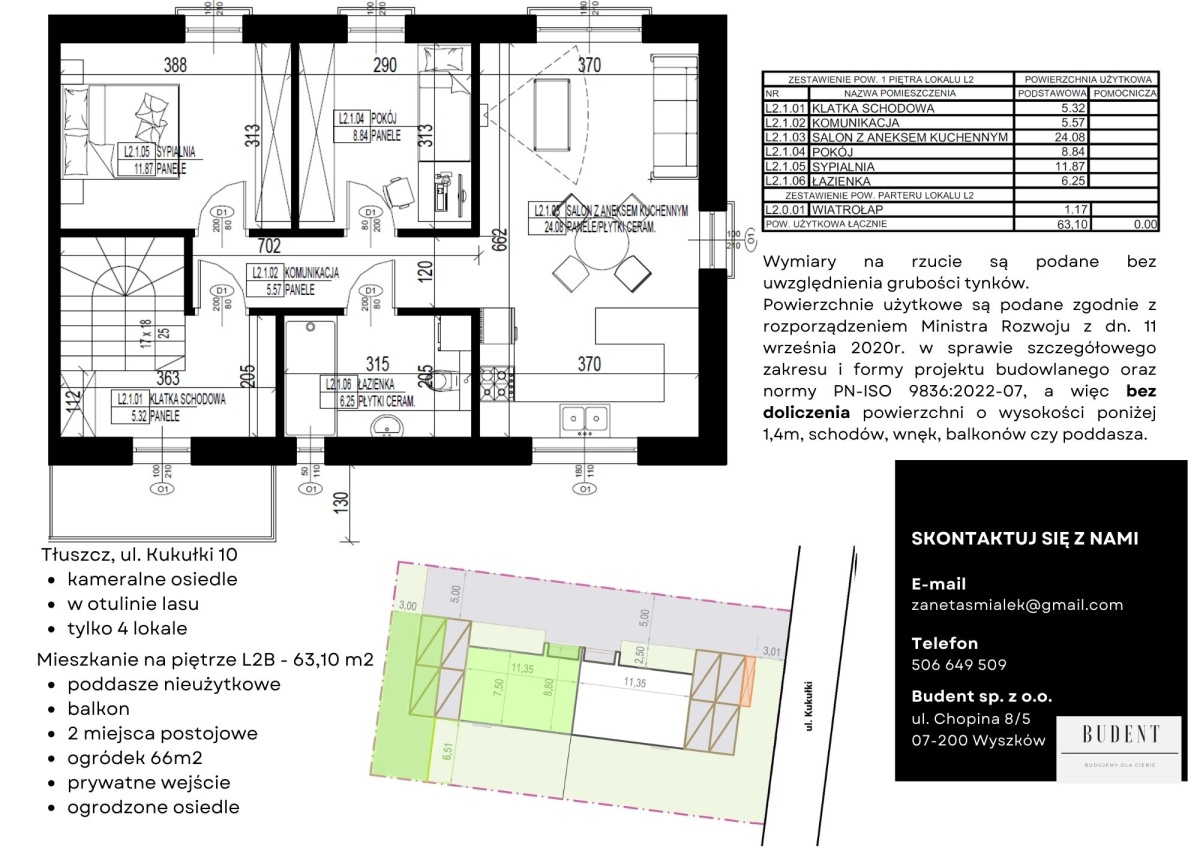 Na sprzedaż mieszkanie L2B 3-pokojowe na piętrze o powierzchni 63,10 m² z dużym ogródkiem 66 m².