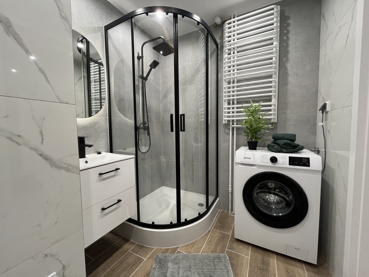 – Nowe sprzęty AGD (pralka, lodówka, płyta indukcyjna, okap, piekarnik, zmywarka)