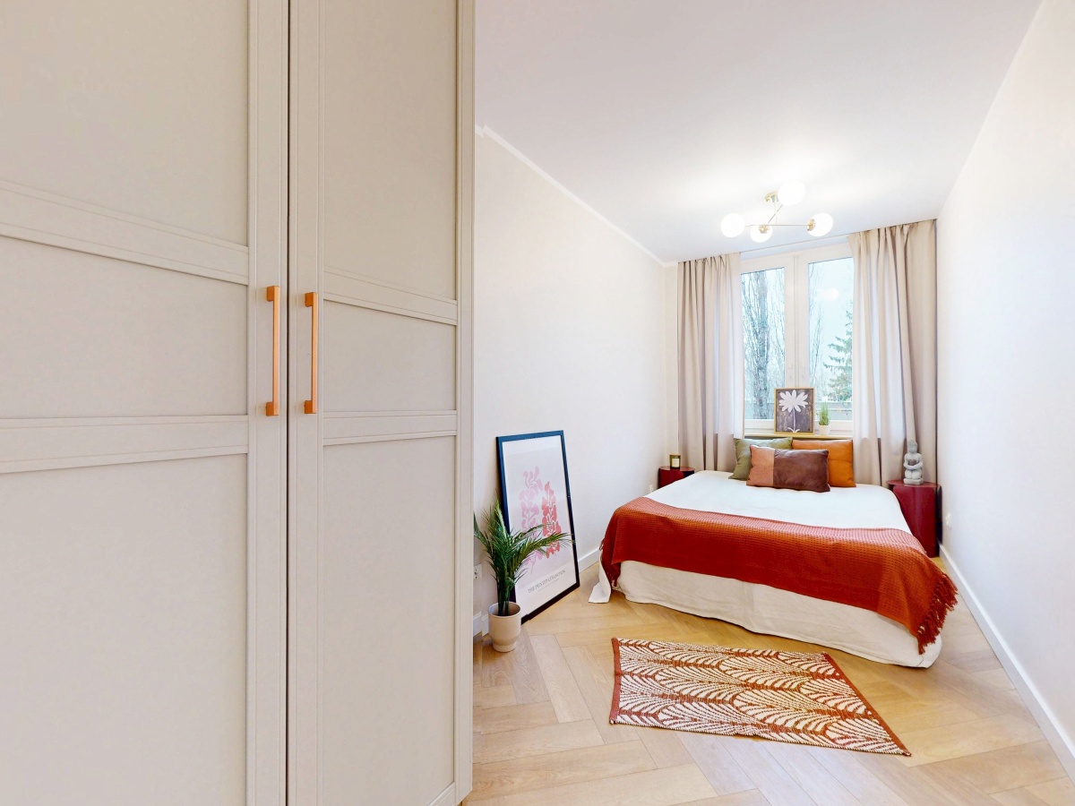 Lokalizacja: 300m do Parku Skaryszewskiego i przystanków tramwajowych, w okolicy wiele pięknych terenów do spacerów, lokalnych usług i knajpek – wszystko z czego słynie Saska Kępa.