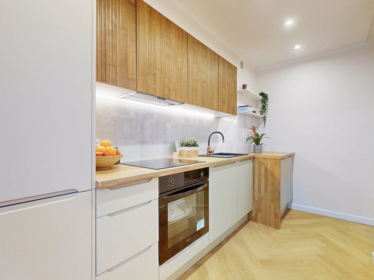 Mieszkanie w pełni wykończone i wyposażone. Gotowe do wprowadzenia, niezamieszkane. Cena obejmuje wyposażenie wraz ze sprzętami agd na gwarancji (pralka, lodówka, zmywarka, płyta, piekarnik).