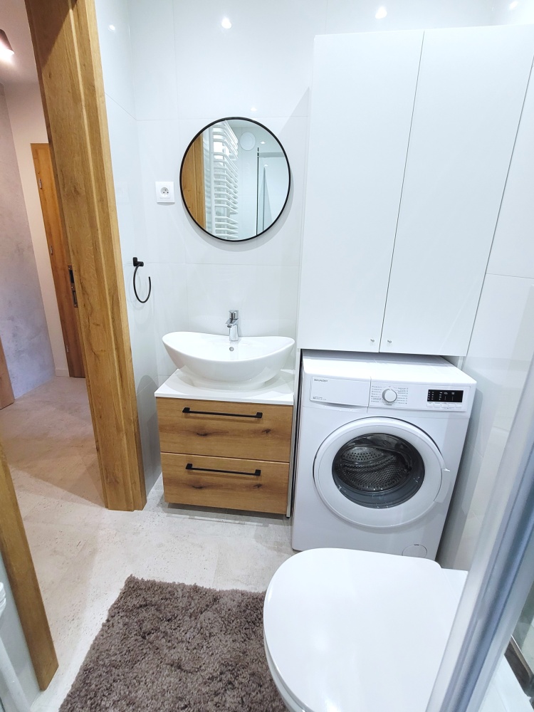 COMFORTABLE 3 rooms with built-in loggia, 50 m2. For living or business, office, office, office, etc…! The apartment is quiet and very well lit with daylight. EXCELLENT location, close to the Płock METRO, perfect public transport, tram, bus, metro and railway lines on site. Beautiful GREEN surroundings, numerous parks – Moczydło, Szymańskiego, multimedia fountains, summer cinema, amphitheater, concerts… An ideal place for people who value contact with nature and active recreation. Full infrastructure, close to Arkdia Shopping Center, Wola Park Shopping Center, Blue City, etc… The apartment has undergone a major renovation, using high-quality materials, stoneware and wood floors, GROHE, Wileroy & Boch and FRANKE fittings. . The apartment includes a basement. Price PLN 3,900 + PLN 750 administration fee + PLN 100 electricity Deposit PLN 7,000 Equipment: – TV – dishwasher – oven – fridge-freezer – induction hob – washing machine The kitchen is equipped with basic utensils. The rest of the furniture according to the tenant’s needs.