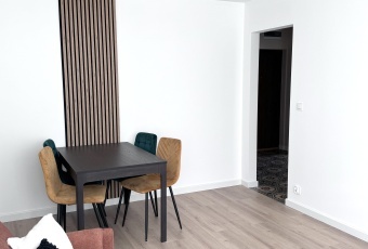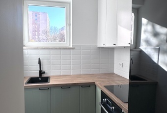 Mieszkanie przeszło kompletny remont i zostało urządzone ze szczególną dbałością o detale. Wnętrza cechują się jasnymi powierzchniami, nowoczesnymi materiałami i przemyślonym designem: