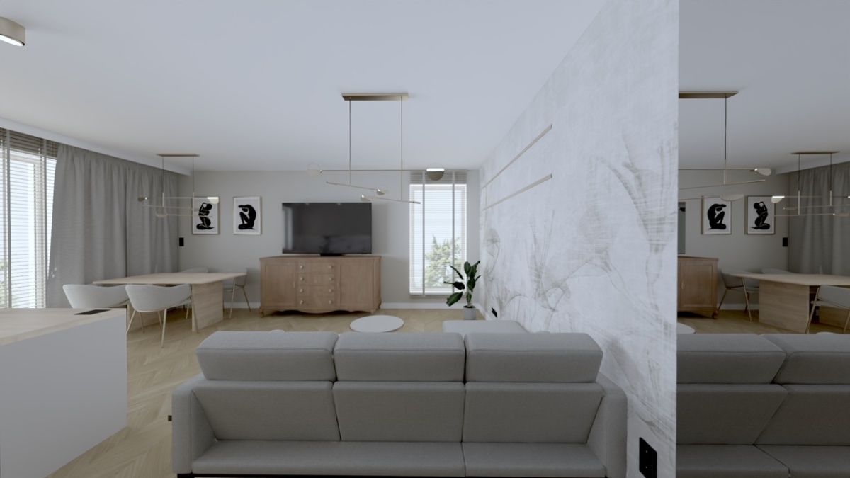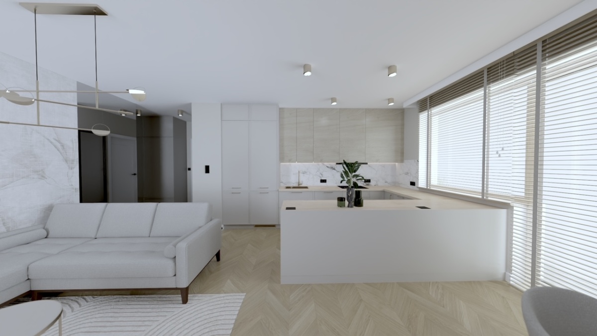 Składa się z dużego salonu z aneksem (32mkw)