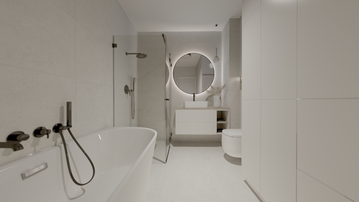 Łazienki z wanną i prysznicem, zabudową na pralkę oraz podłączeniem pod automatyczny bidet