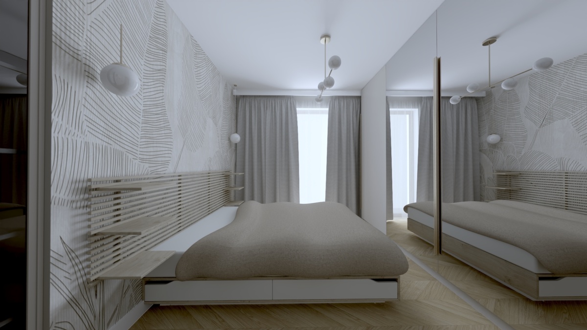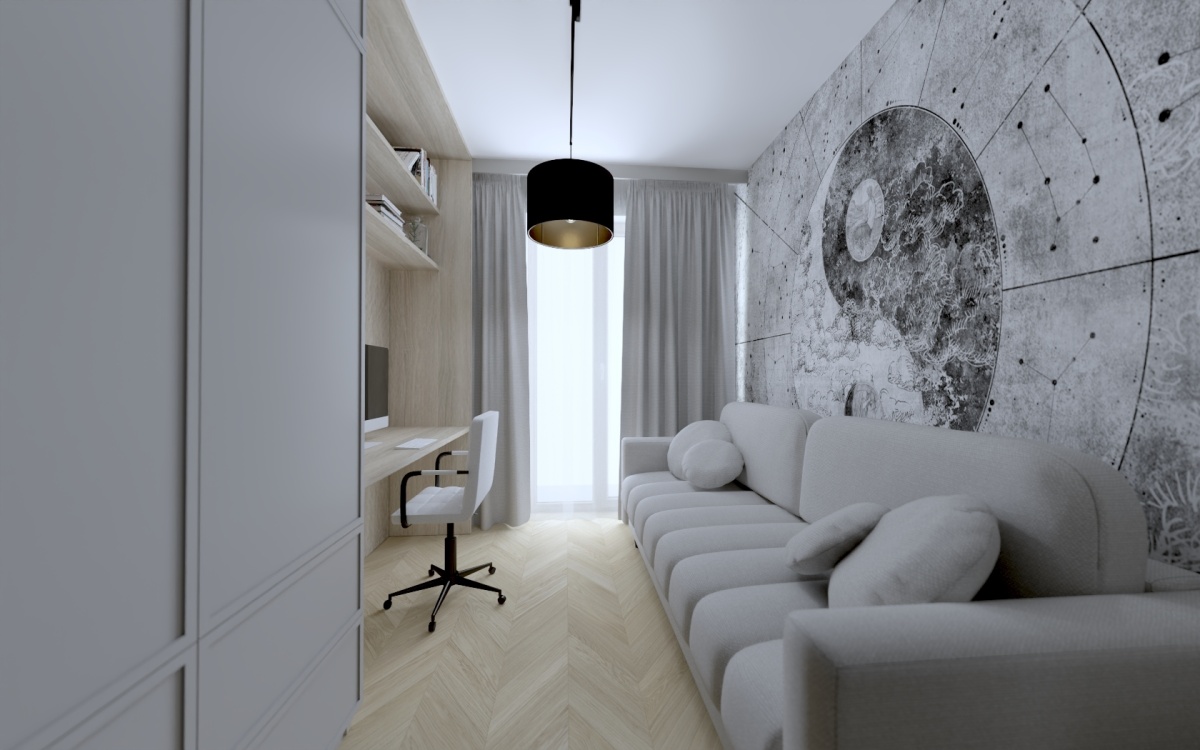 Trzech pokoi (14,5 mkw, 11 mkw, 12,5 mkw)