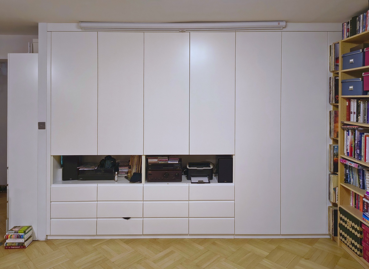 Wyposażenie: W salonie bardzo pojemna szafa wnękowa (robiona na zamówienie), w kuchni zabudowa IKEA (13 szafek) i sprzęt AGD.
