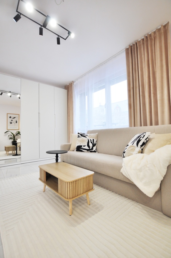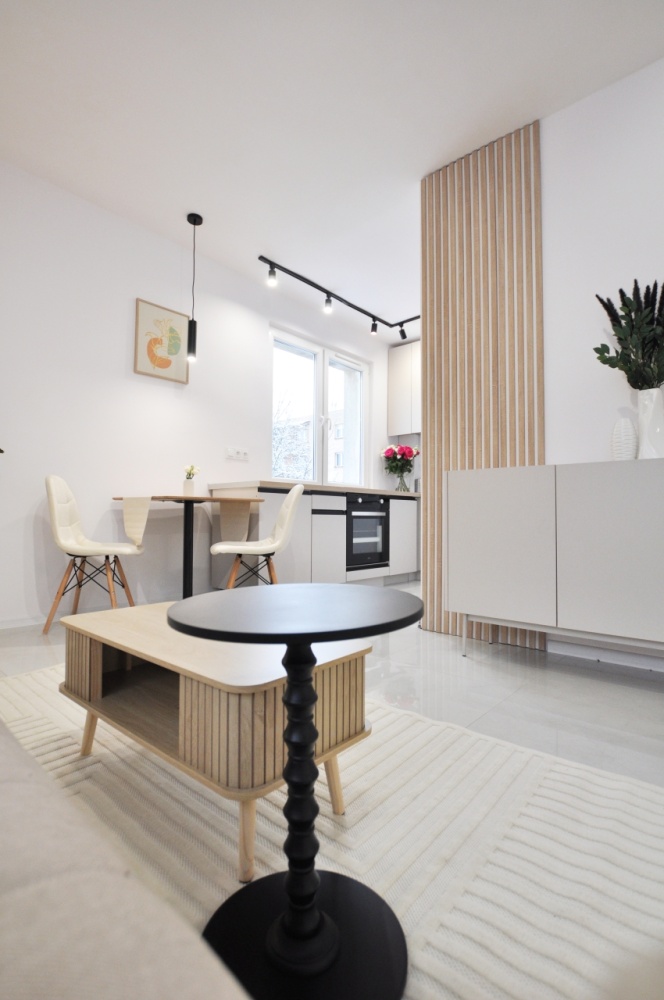 – mieszkanie wykończone w spójnym, nowoczesnym stylu: jasne kolory, świetne doświetlenie, czarne akcenty i wysokiej klasy detale
