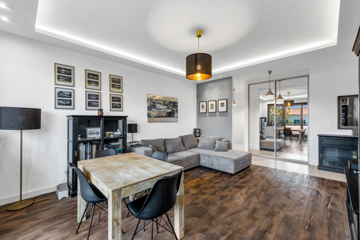 Mieszkanie wykończone w stylu loftowym z dbałością o każdy detal, przy użyciu materiałów wysokiej jakości: