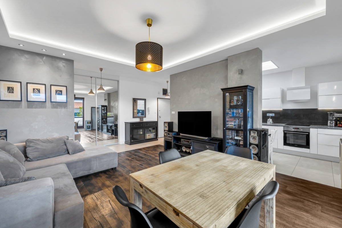 Układ: 4 pokoje, w tym przestronny salon połączony z kuchnią,