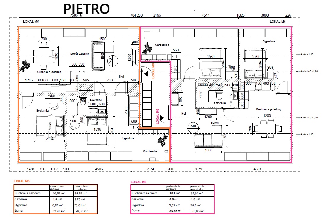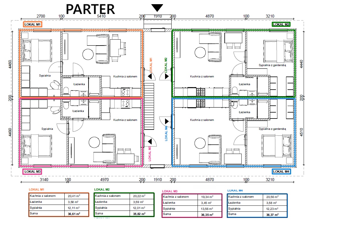Powierzchnia użytkowa budynku: 4*35m2 + 2*38m2 = ok 216m2
