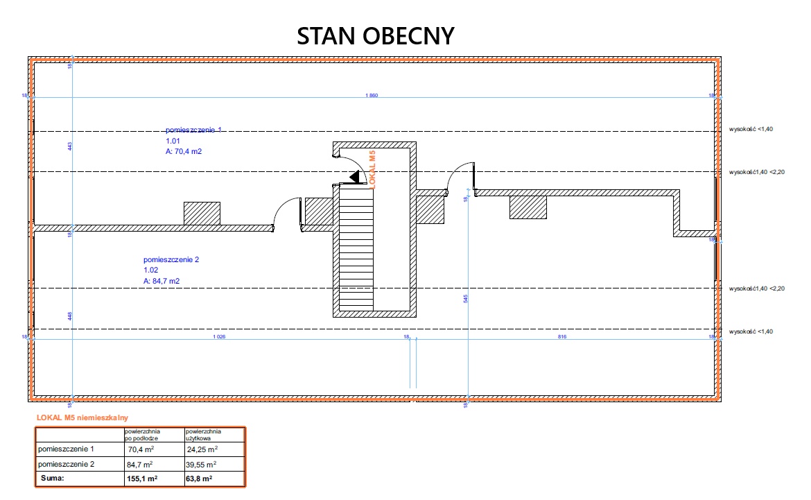 – 155,1 m² po podłodze – 63,8 m² PUM (pow. użytkowa)