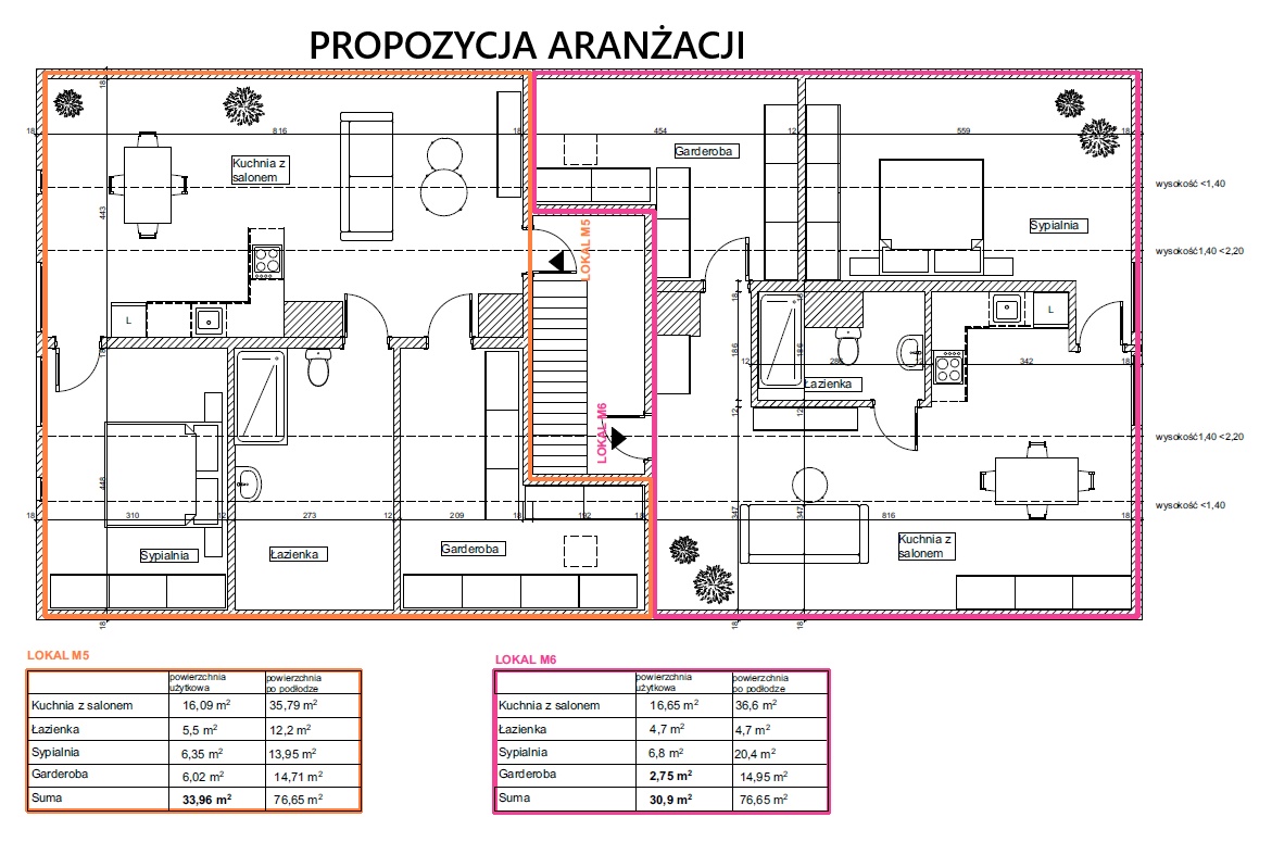 – Możliwość przekształcenia i zmiany przeznaczenia na 2 mieszkania 2-pokojowe o powierzchniach 30,9 m² oraz 33,96 m² PUM (po podłodze po ok. 76 m² każde)