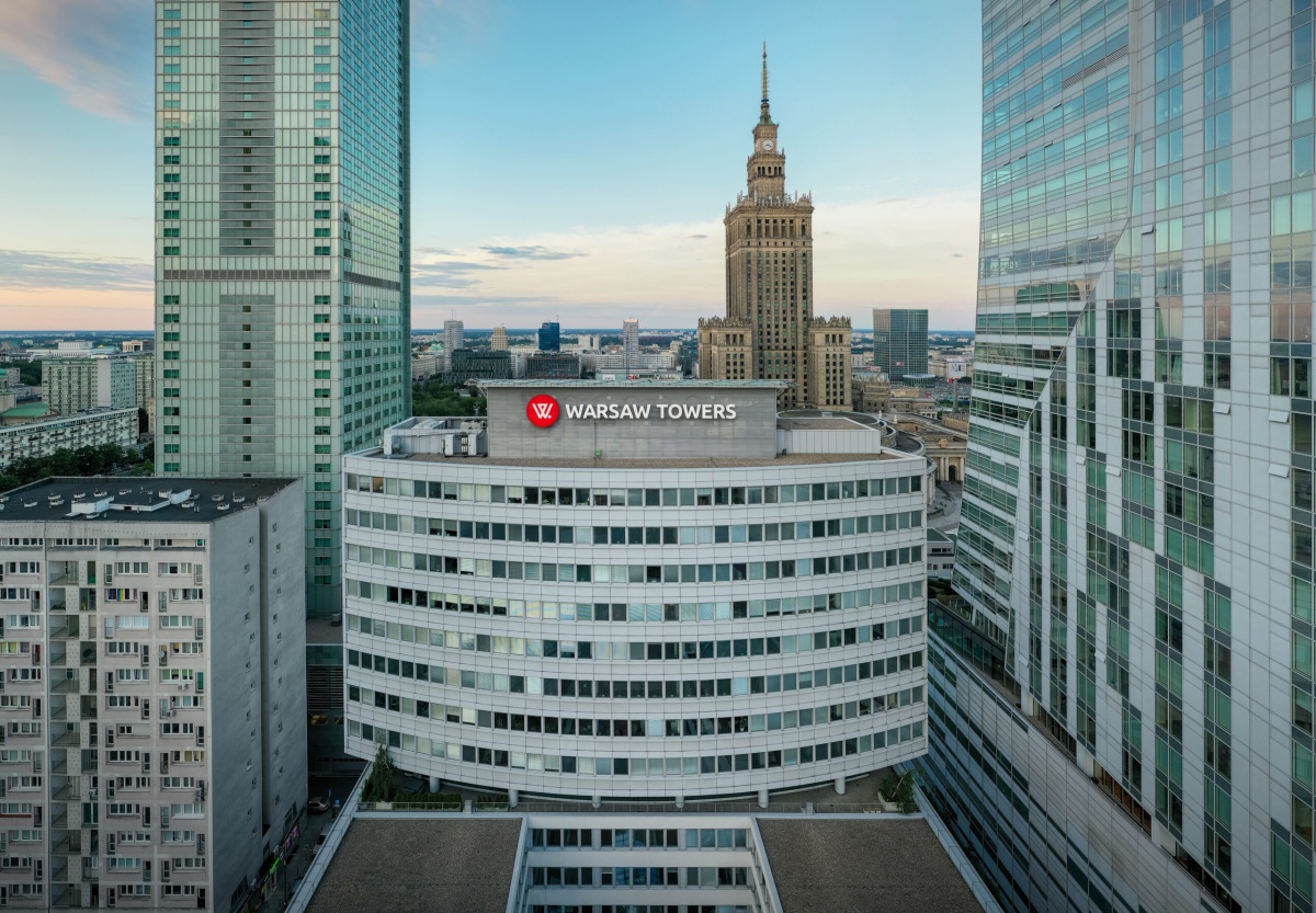 Biuro do podnajęcia w budynku Warsaw Towers (Sienna 39, 00-121 Warszawa). Bliskie sąsiedztwo Pałacu Kultury i Nauki, dworca Warszawa Centralna, Złotych Tarasów oraz hotelu InterContinental.
