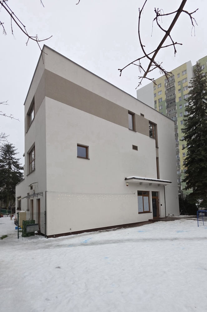 W obiekcie znajduje się pełne zaplecze kuchenne z jadalnią, sanitariaty i pomieszczenia pomocnicze. Na 1p. jest możliwość połączenia dwóch sal w jedno duże pomieszczenie służące występom dzieci. Budynek spełnia wszystkie wymagania do prowadzenia tego typu dzialalności, posiada wszystkie przyłącza, oraz indywidualne ogrzewanie gazowe. Trzecia kondygnacja może być odseparowana od pozostałych (są dwie niezależne klatki schodowe).