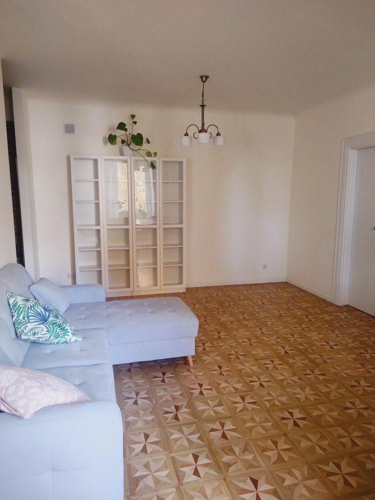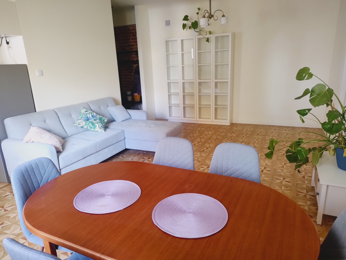 Do wynajęcia dwupokojowe mieszkanie o pow.60 m2 na drugim piętrze w kamienicy na Pradze Północ. Umeblowane i wyposażone w niezbędne sprzęty: lodówka, kuchnia z piekarnikiem, wbudowana kuchenka mikrofalowa, pralka. Doskonała lokalizacja przy pętli tramwajowej 13-ki i 7-ki. Cicha okolica. Odległość ok. 6 km od Centrum Warszawy. 20 minut pieszo – centrum handlowe Wileńska, 15 minut – dw. Wschodni, 5 minut – Mała Warszawa ( dawna Fabryka Trzciny) – teatr, koncerty, 5 minut – przychodnia lekarska, 10 min. – Kaufland i Biedronka, Bazylika NSJ – 2 minuty. W pobliżu dwa parki i boisko sportowe. Parkowanie na ulicy bez opłat.