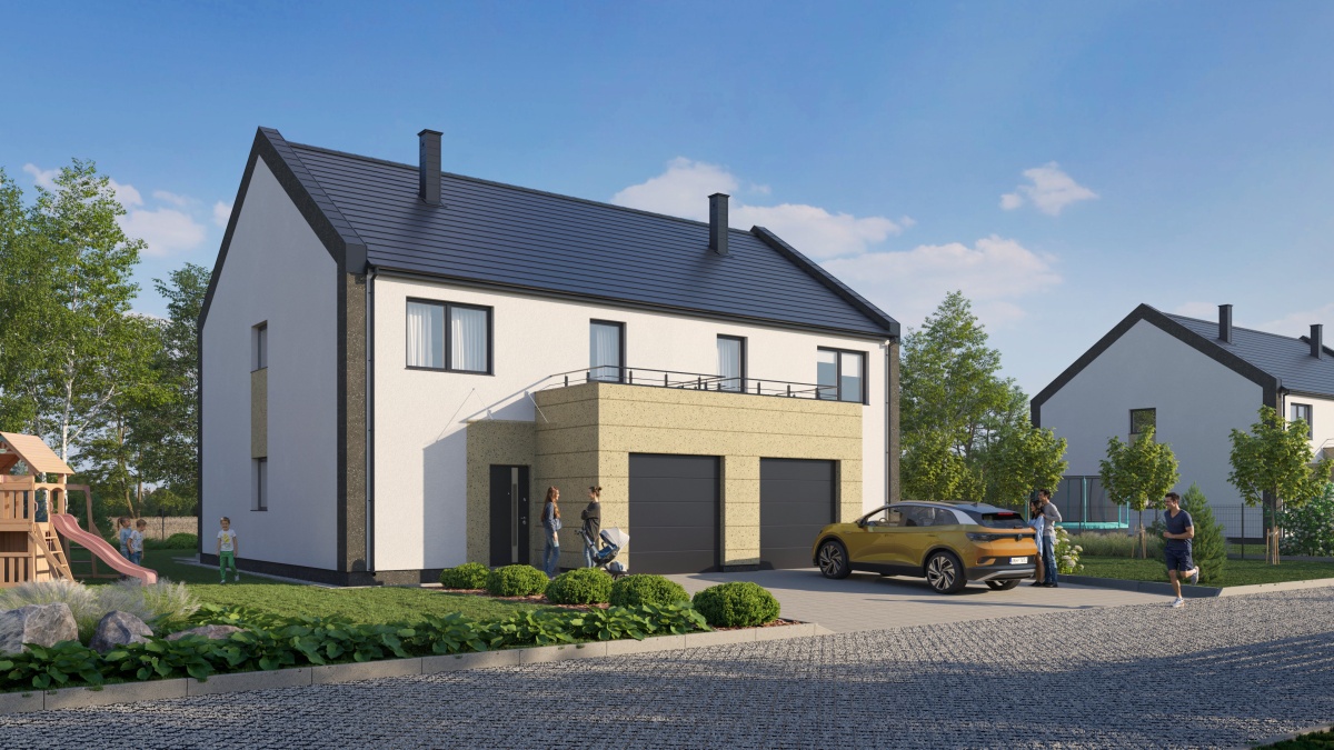 Zakończenie budowy pierwszych czterech domów to marzec 2026 rok.