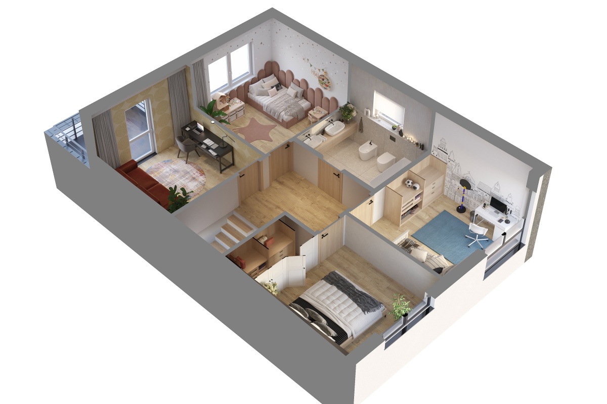 137,14 m² powierzchni użytkowej + strych około 30 m2 do własnej aranżacji.