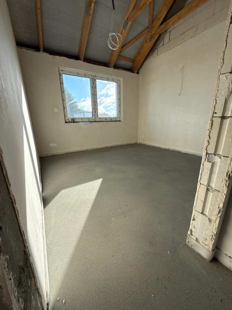 Strych, około 30 m², wyłożony podłogą osb – miejsce do przechowywania lub dwa dodatkowe pokoje – decyzja należy do Ciebie.