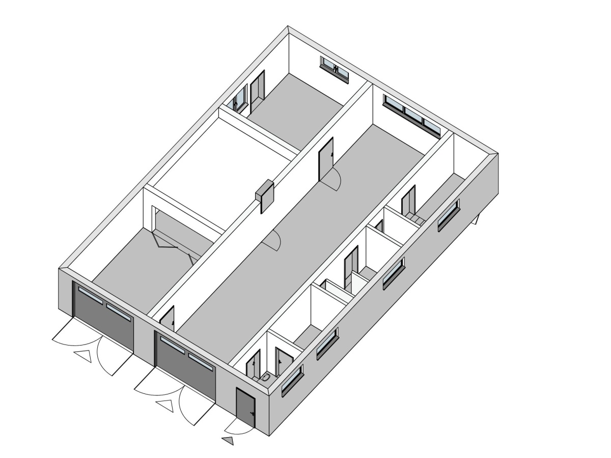 • Pozostałe: przedsionek, mag. podręczny, łazienka, toaleta, mag., kotłownia, pom. socjalne z zabud. kuchenną, miejsce na biuro, wszystkie pom. z oknami
