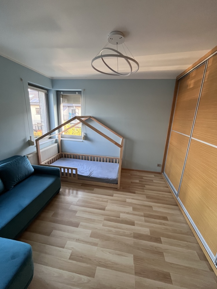 Piętro (70,29 m²): trzy sypialnie (w tym główna 17,77 m²) oraz komfortowa łazienka (14,5 m²). W sypialni oraz w jednym z pokoi klimatyzacja. W każdym z pokoju zabudowana szafa.