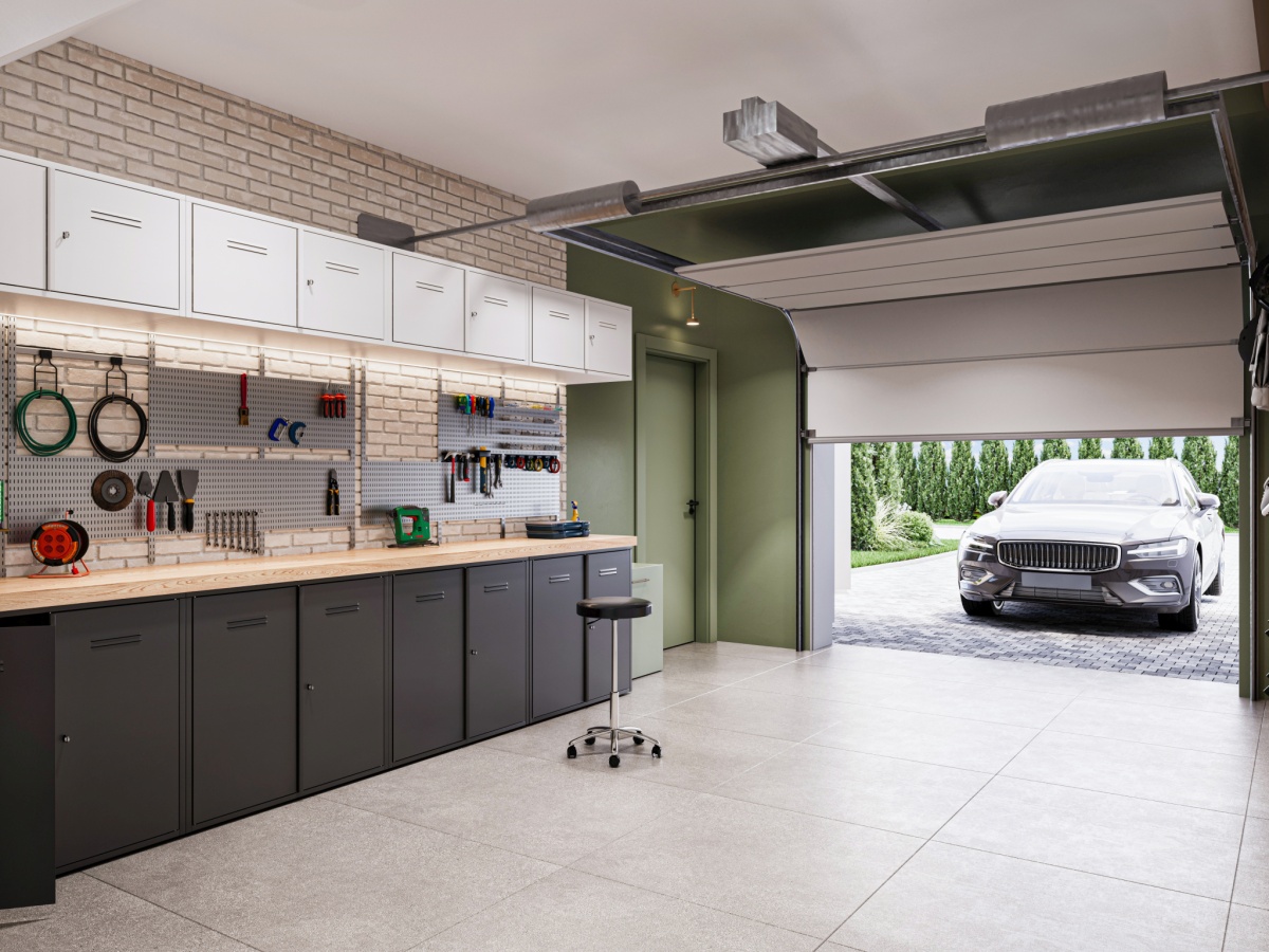 garaż w bryle budynku i dodatkowe miejsce postojowe na podjeździe,