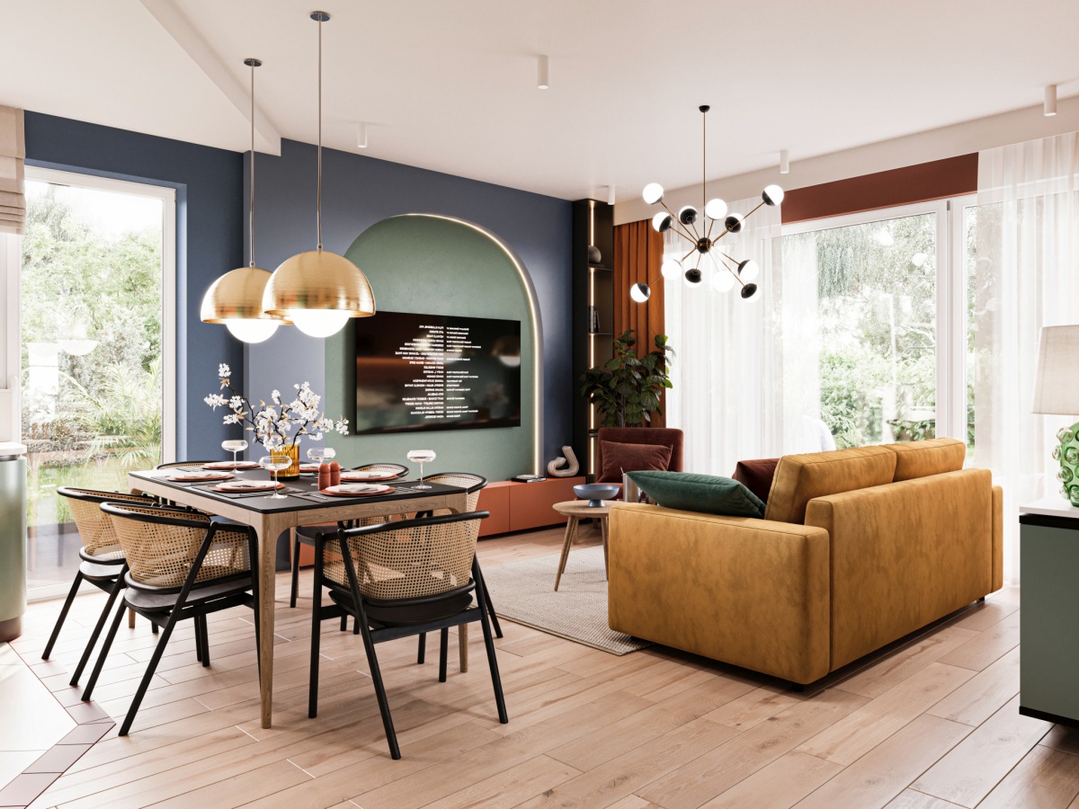-duże przeszklenia otwierające salon na ogród,