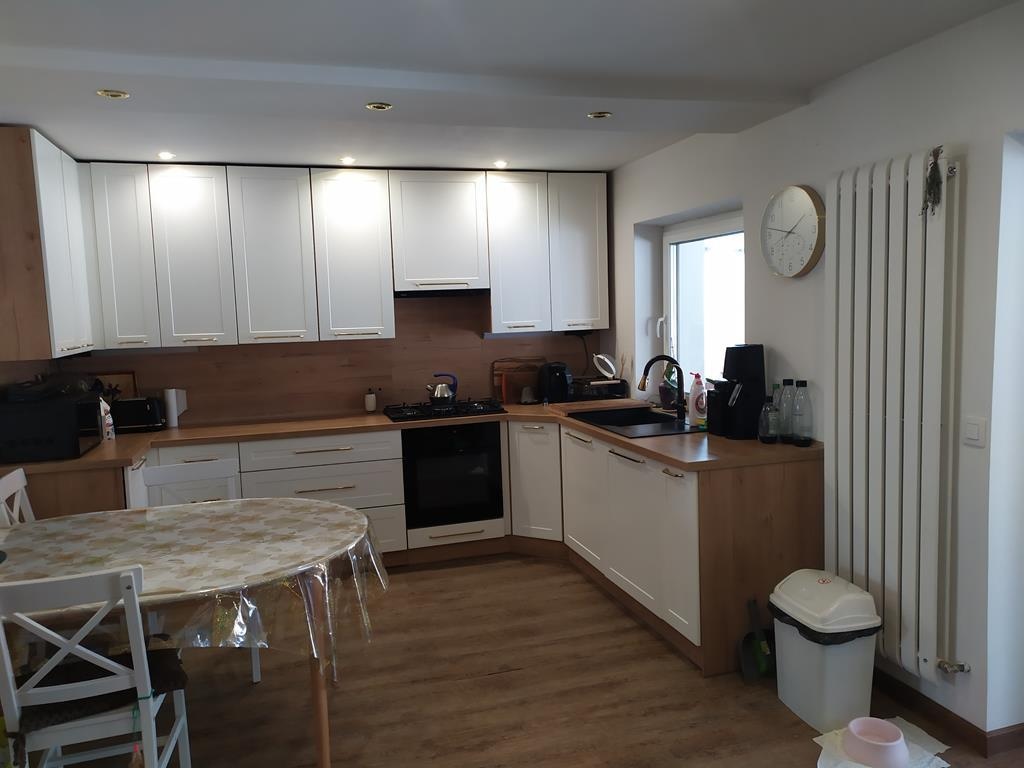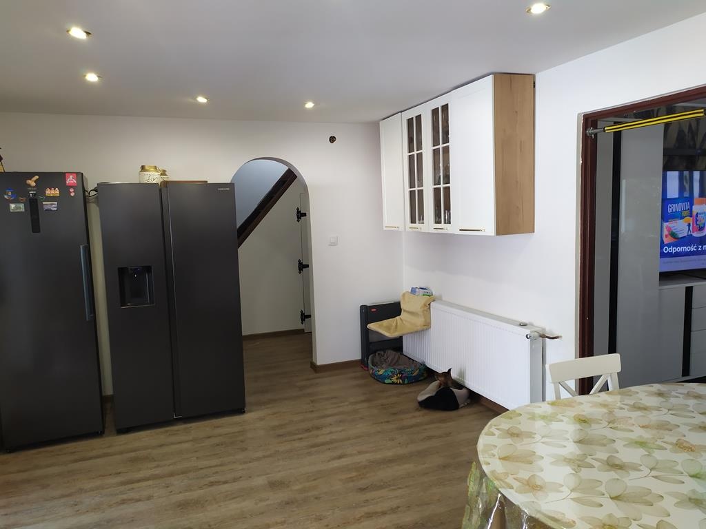 Ocieplony styropianem 15/20 cm grubości. Nowy dach pokryty blachodachówką, ocieplony pianą Pur o grubości 28 cm. Nowe posadzki pokryte panelami winylowymi. Nowe okna trzyszybowe i ciepłe drzwi. Nowa hydraulika i elektryka, nowe grzejniki o bardzo dużej powierzchni ze względu na ekonomię ogrzewania pompą ciepła.