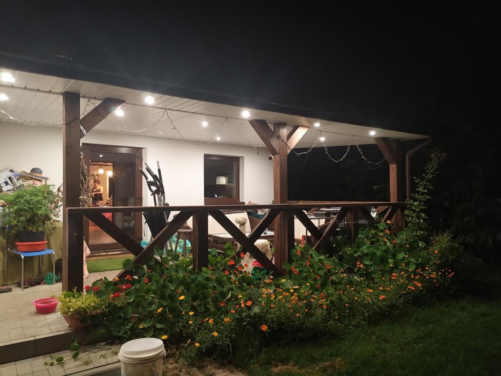 Pokój 18m z wyjściem na zadaszony taras 2,8mx4,2m (12m) od zachodniej strony.