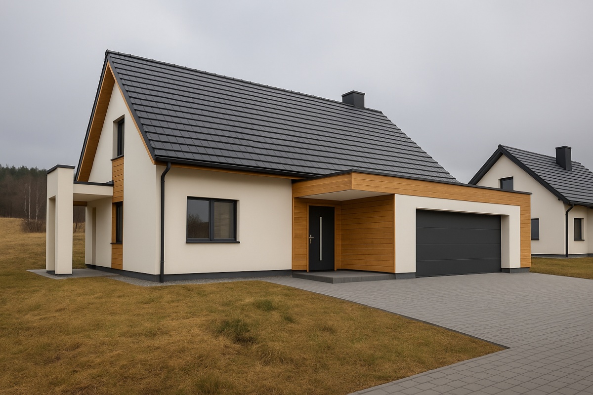 Ściany domu zostały docieplone styropianem Genderka o grubości 20 cm.