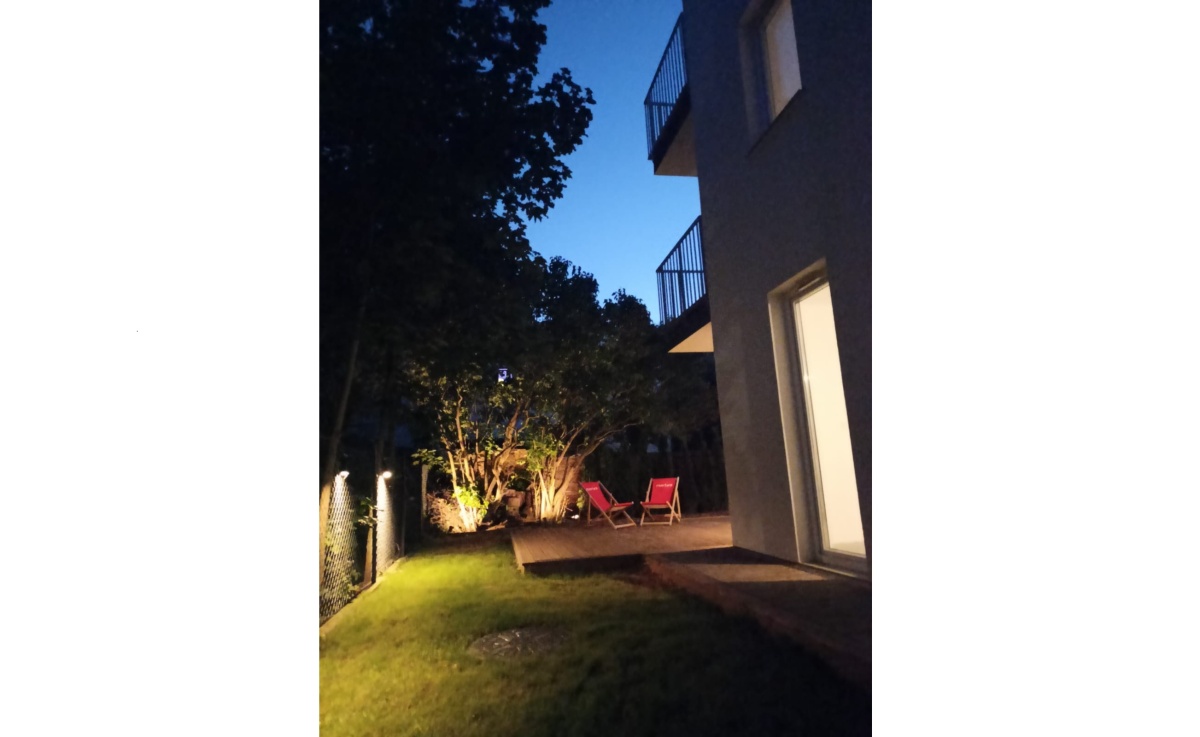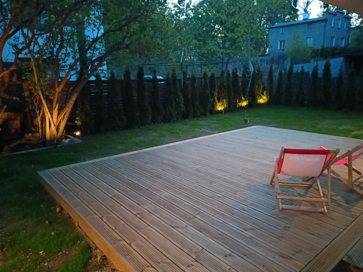 z tarasami 60m2 , ogrodem , garażem i miejscami parkingowymi.