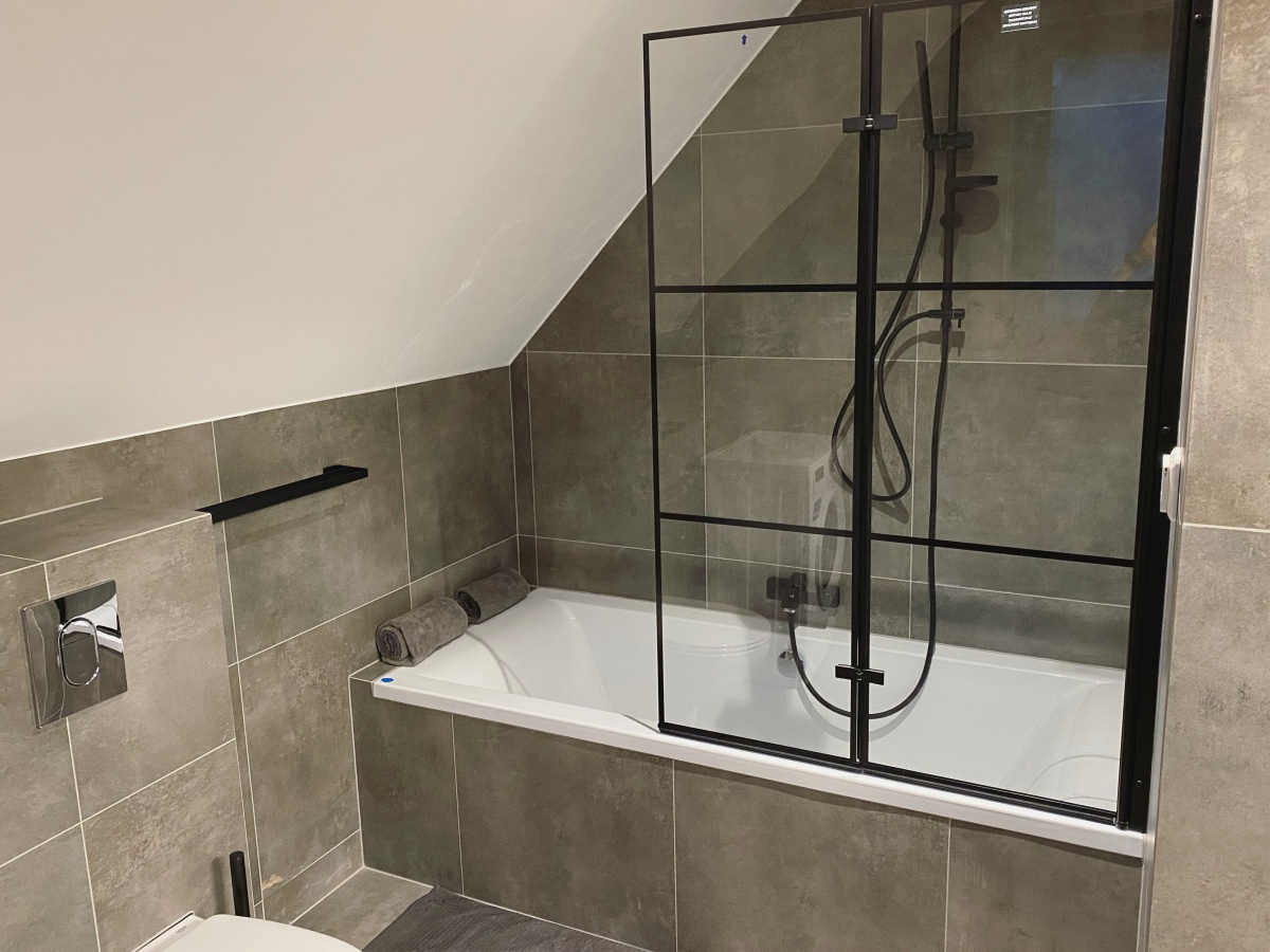 Piętro : przedpokój, trzy sypialnie, duża łazienka z wanną i prysznicem, garderoba 2,7m x 1,5m.