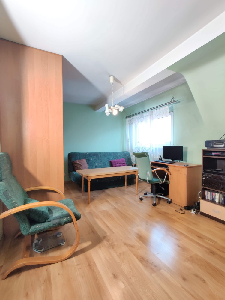 Nieruchomość składa się z dwóch kondygnacji, w całości podpiwniczona składająca się z trzech pomieszczeń. Powierzchnia parteru składa się z; pokoju dziennego, jadalni, kuchni, łazienki, hallu, wiatrołapu (przedsionek) garażu. Powierzchnia piętra składa się z; dwóch pokoi, łazienki, hallu z kładką schodową. Strych w pełni użytkowy (przerobiony na pokój)