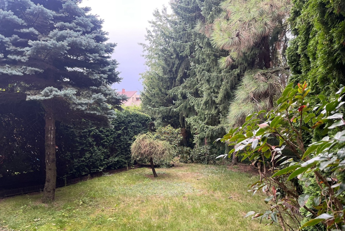 Ogród ze starodrzewem, który zapewnia prywatność i spokój – idealne miejsce na wypoczynek w cieniu drzew lub spotkania z rodziną i przyjaciółmi.