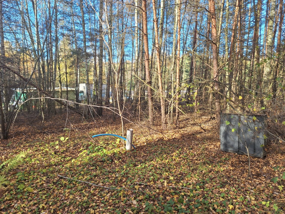 Działka ma kształt trapezu, jest porośnięta krzakami i drzewami i jest położona w sąsiedztwie lasu oraz w odległości ok. 40 m od lustra wody.