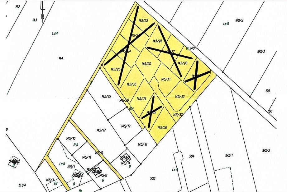 Przedmiotem ogłoszenia są TYLKO działki w kolorze żółtym.