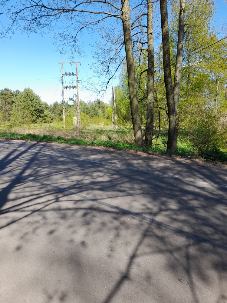 Działka nieogrodzona oraz nieuzbrojona – słup energetyczny (transformator) na granicy działki oraz słup elektryczny , sieć wodociągowa przy drodze .