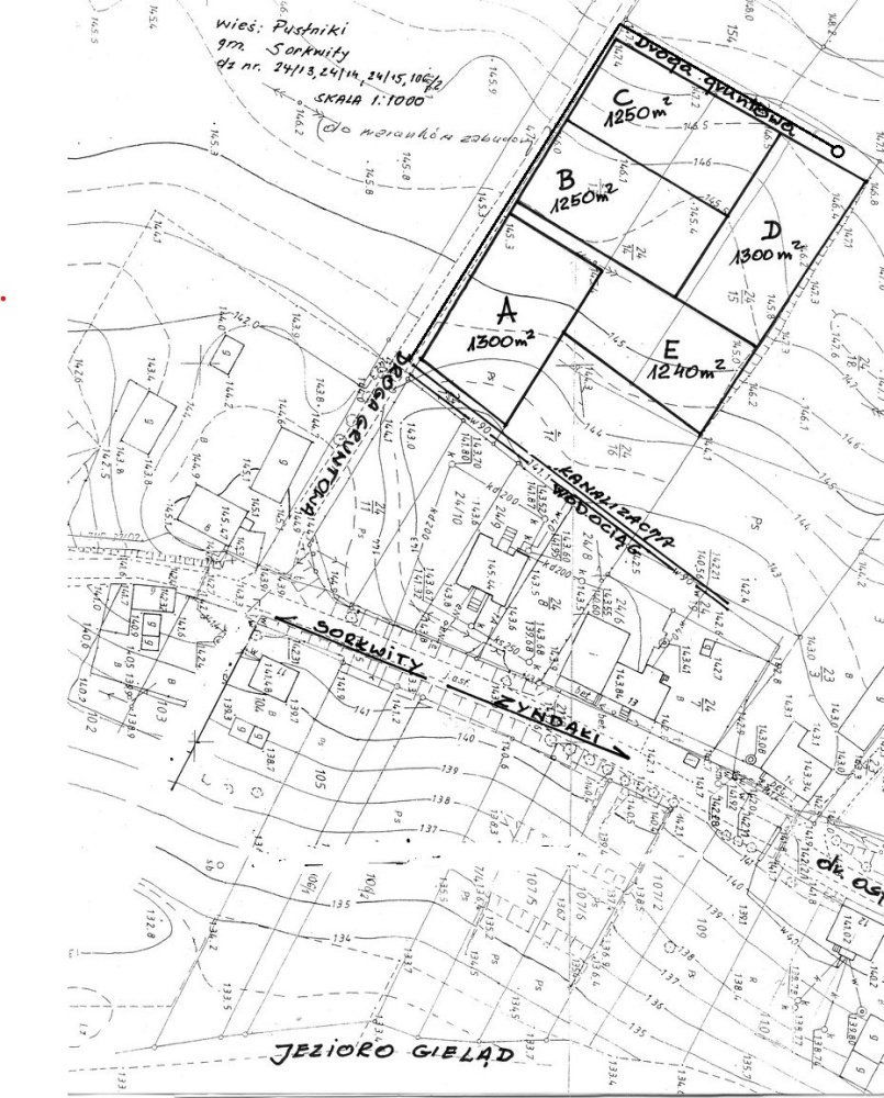 Trzy działki budowlane, które mogą być przedmiotem sprzedaży pojedynczo, z przeznaczeniem na budowę budynków mieszkalnych (całorocznych lub letniskowych) lub w całości albo po dwie, trzy, pod budowę pensjonatu. Na załączonej mapie działki wg nowego podziału przeprowadzonego w roku 2017 oznaczone zostały literami A, B, C, D i E. Działki B i C zostały sprzedane.