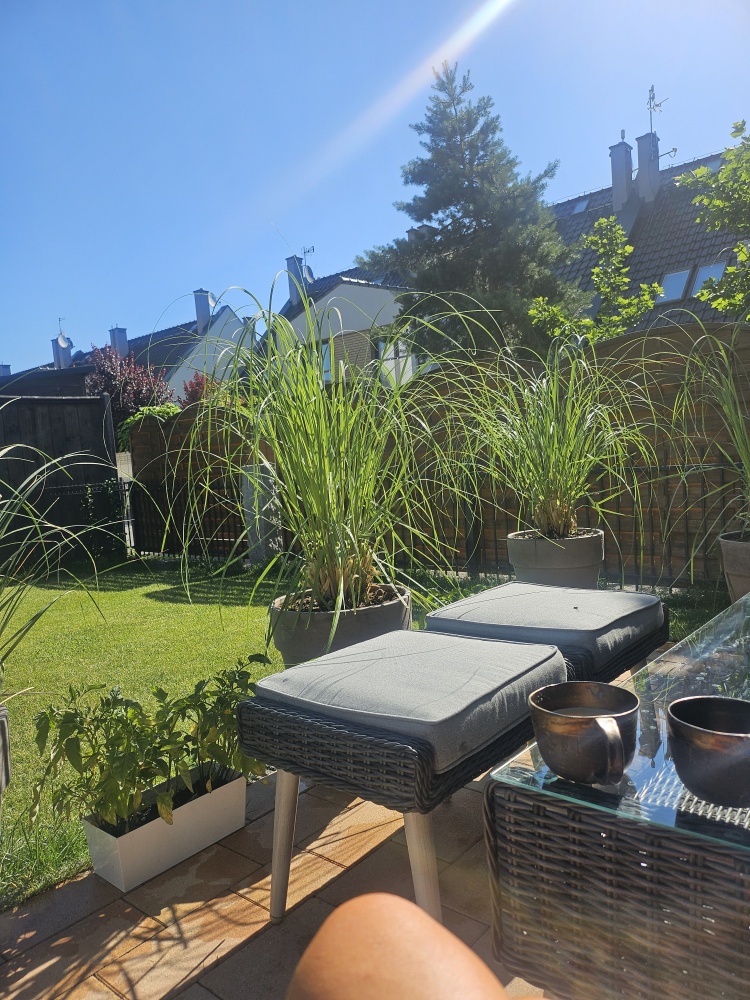 Ogród z wydzieloną strefą wypoczynkową stanowi naturalne przedłużenie salonu. To miejsce, w którym dzień można zakończyć w ciszy i zieleni, z dala od miejskiego zgiełku.