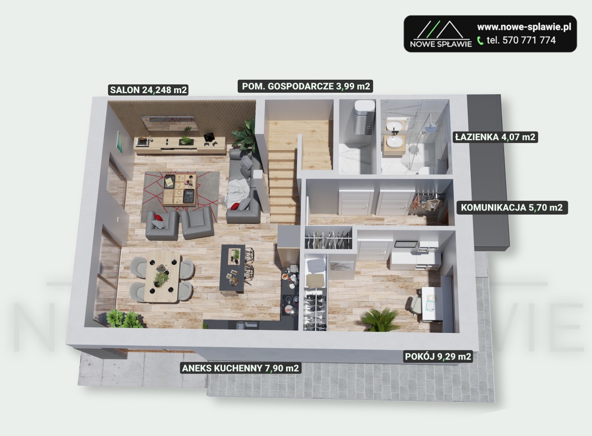 • Przestrzeń dla rodziny: 6-pokojowy dom (111,54 m²), działka (305 m²), Nowe Spławie – Dom nr 16