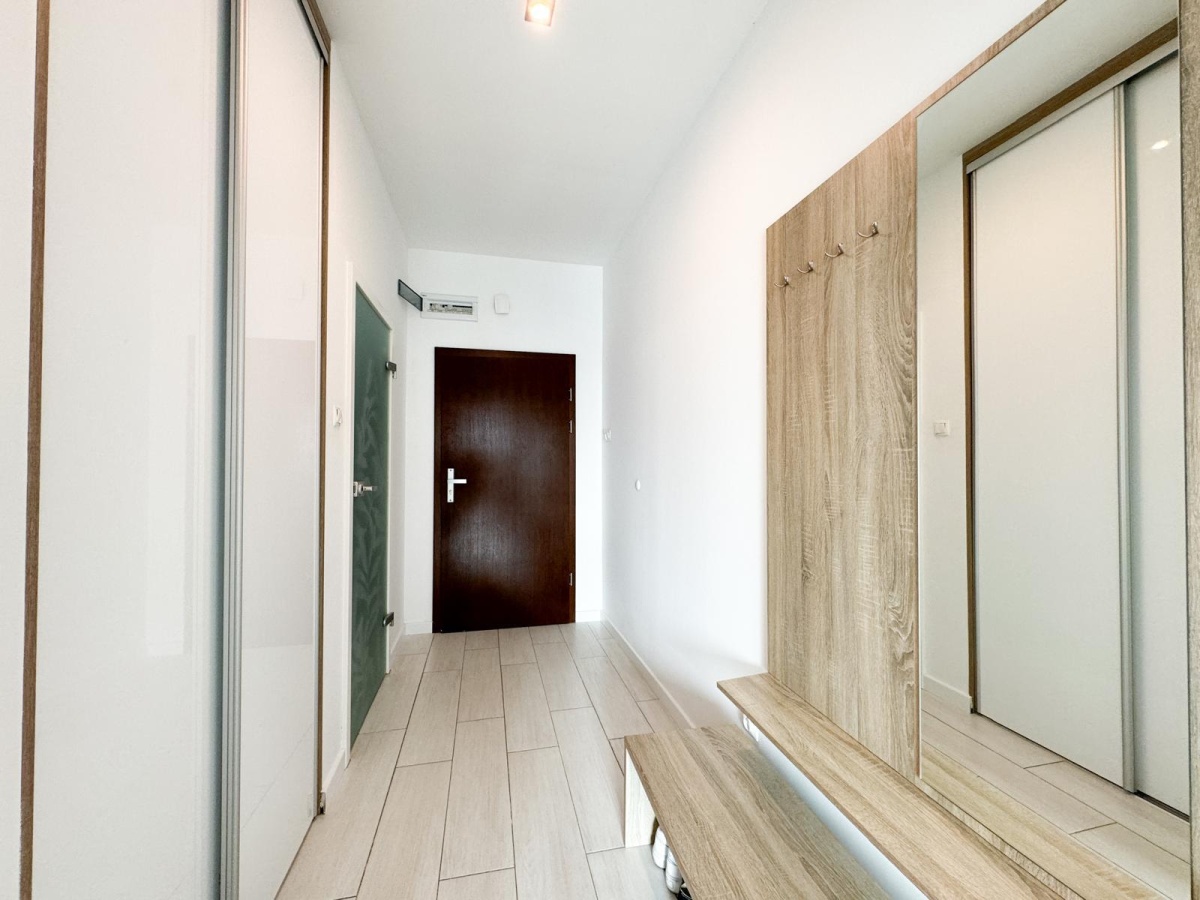 Wyposażenie: Nowoczesne meble, zabudowa kuchenna w matowych akrylach, pralka, lodówka, piekarnik, zmywarka