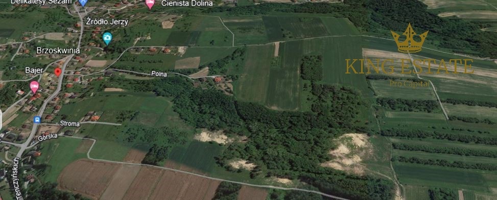 Działka usytuowana w miejscowości Brzoskwinia w powiecie Krakowskim – Zabierzów nie opodal A4 i lotniska w Balicach.